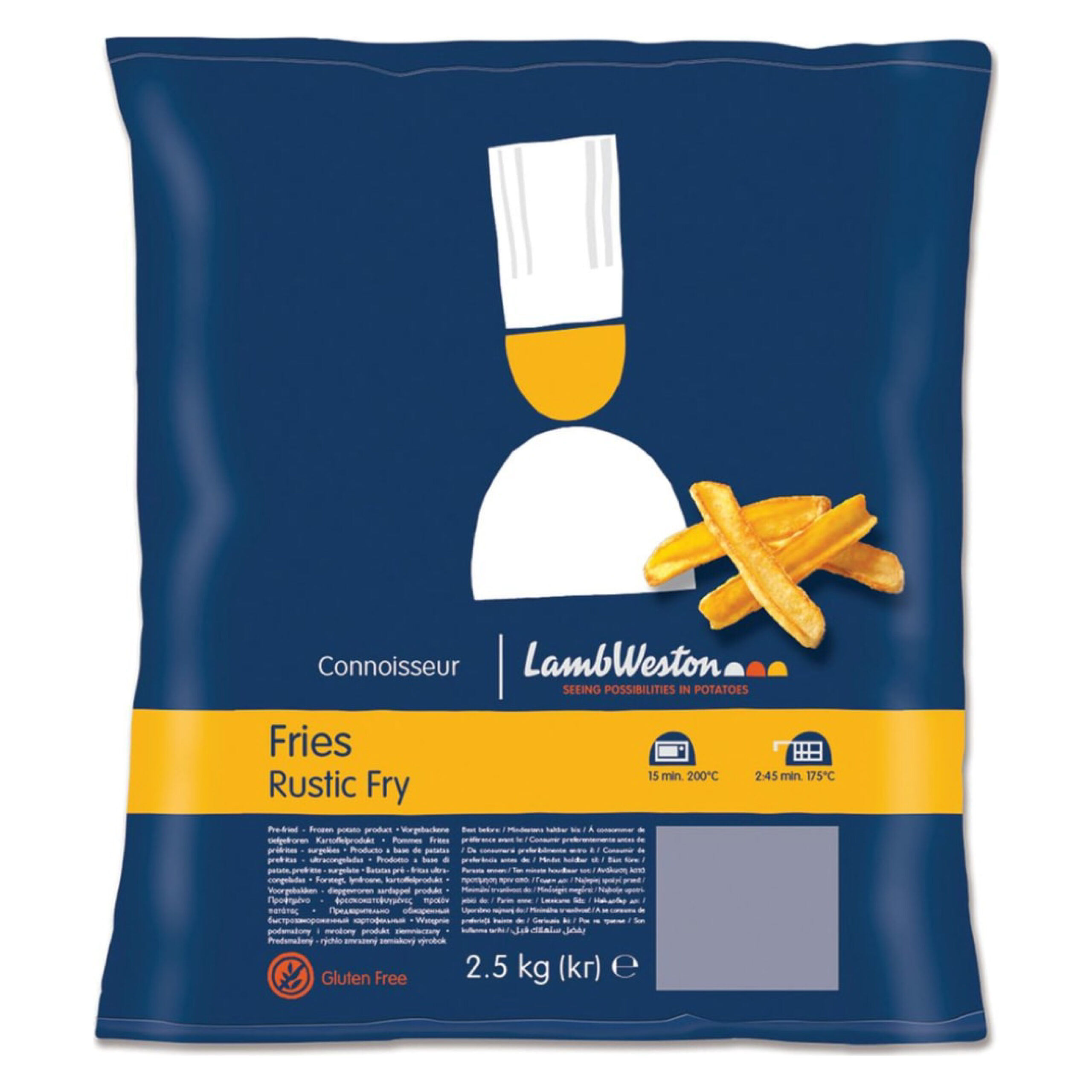 These Lamb Weston Connoisseur Rustic Skin On Fries are pre-fried and a deep-frozen potato products. These fries are skin-on allowing for more flavoursome results that are sure to impress. These fries are perfect for busier kitchens, pubs, cafes, restaurants and much more! • Each case contains four bags of Lamb Weston Connoisseur Rustic Skin On Fries. • Each bag weighs approx. 2.5kg. • Each sold in a polythene bag. • This product is frozen.